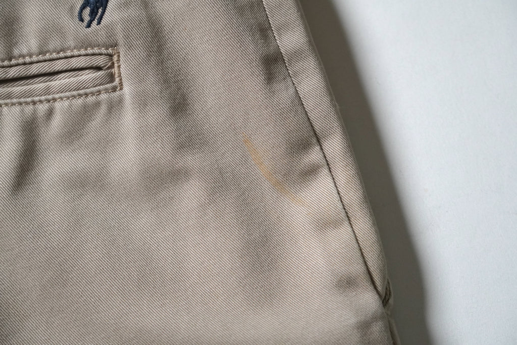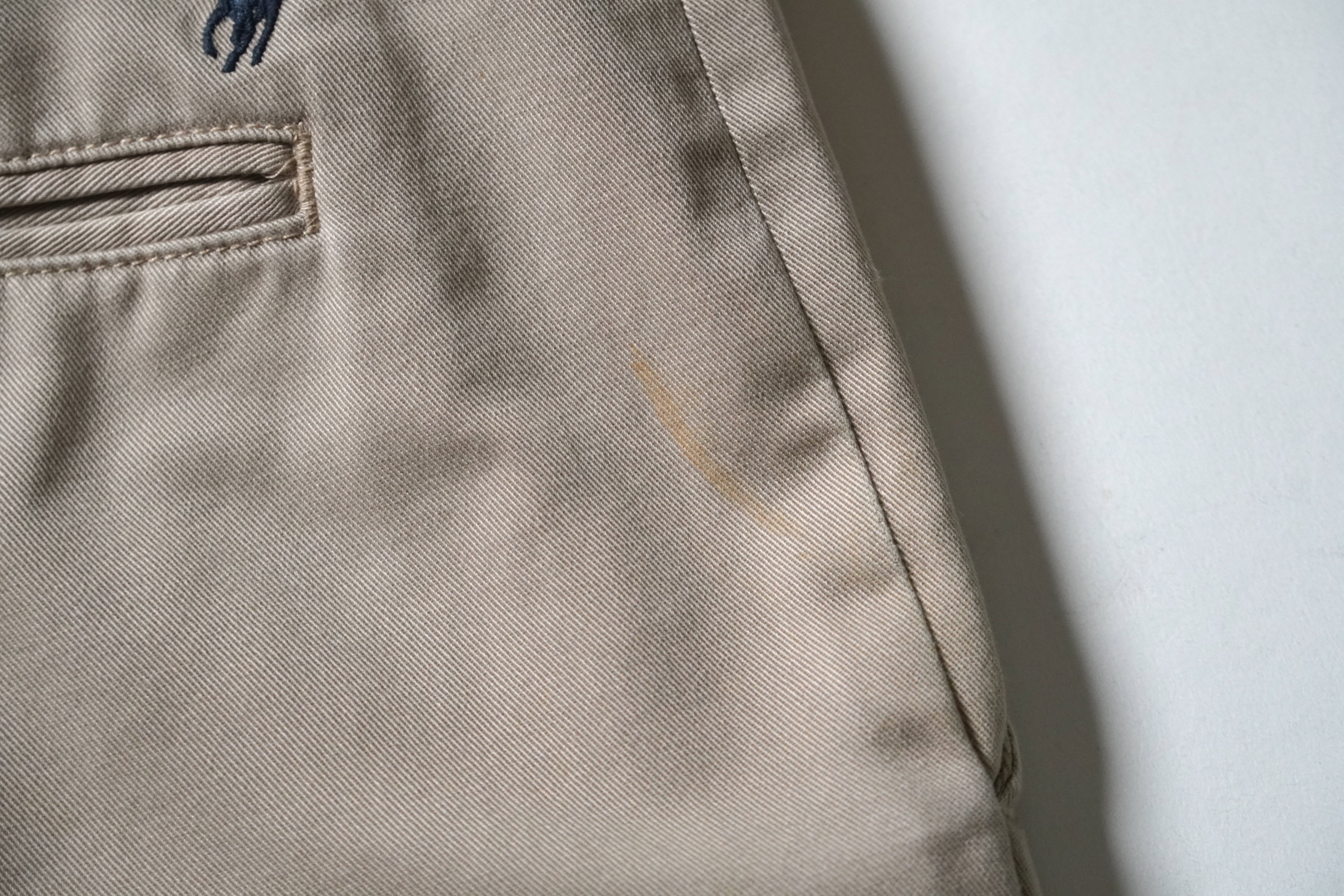 「ポロ ラルフ ローレン」の「PRESTON PANT」。ノータック仕様の太めストレートシルエットで、ベーシックな1本です。フロントはコインポケット付きのプレーンなデザイン。ところどころに汚れがありますので、写真にてご確認ください。
