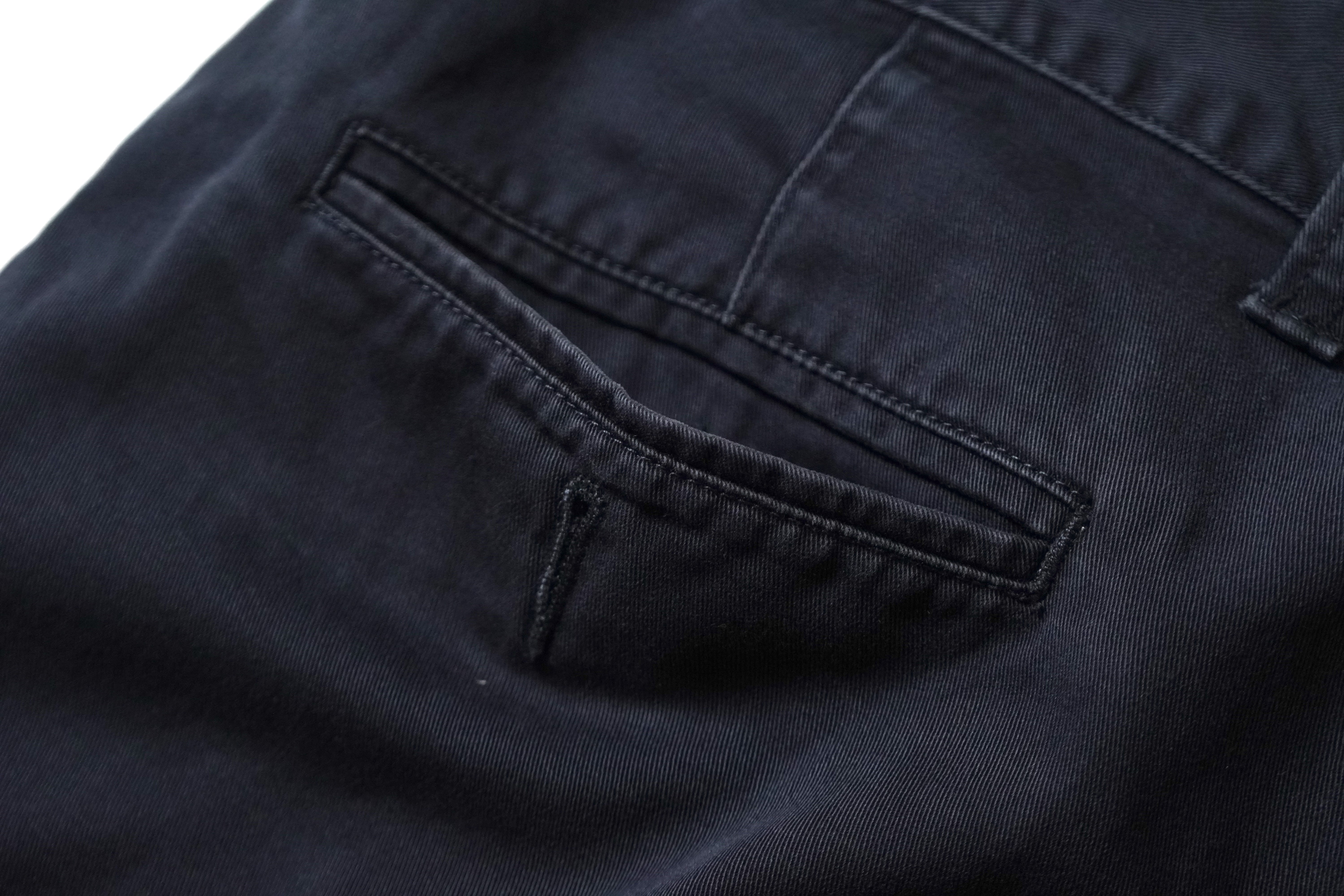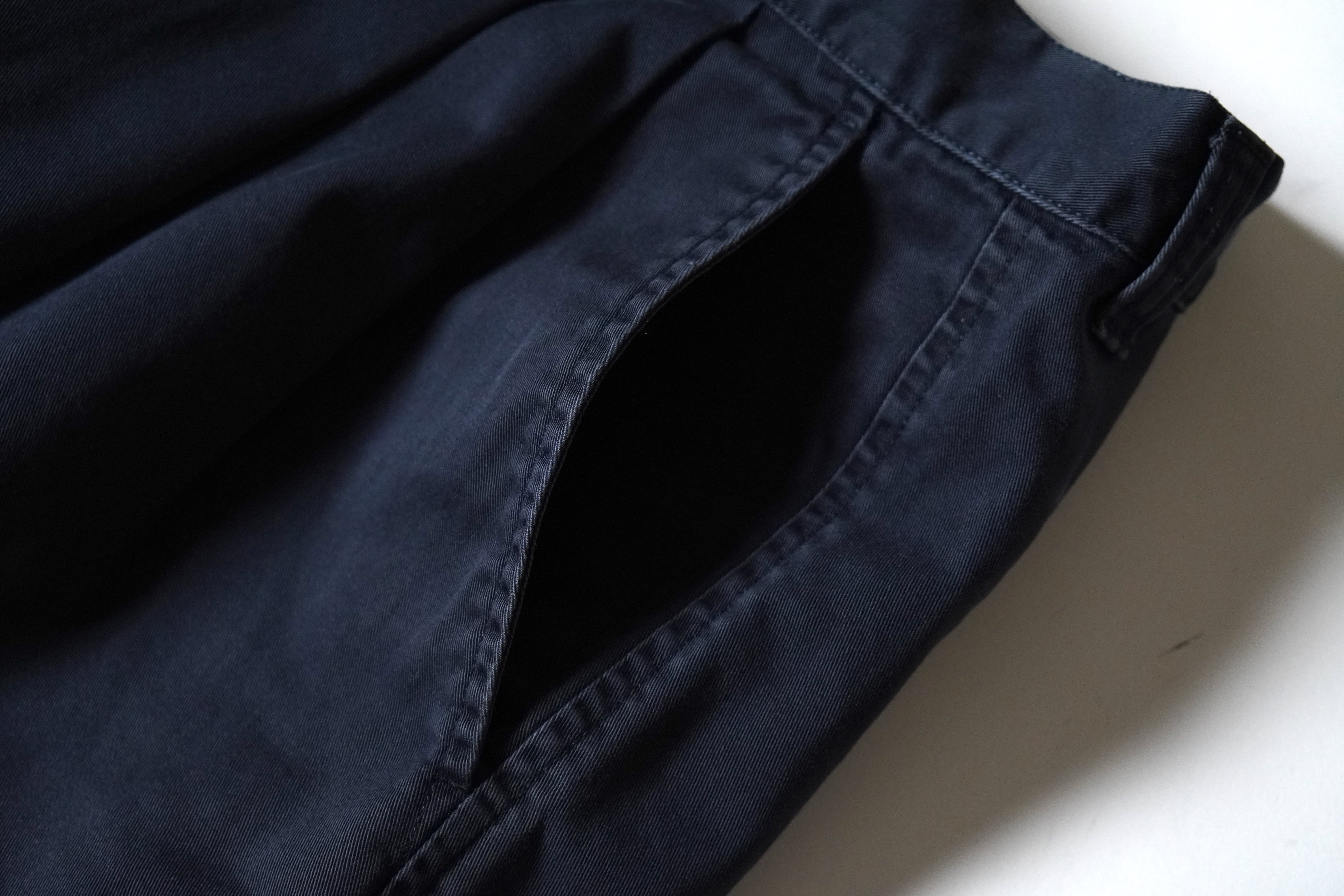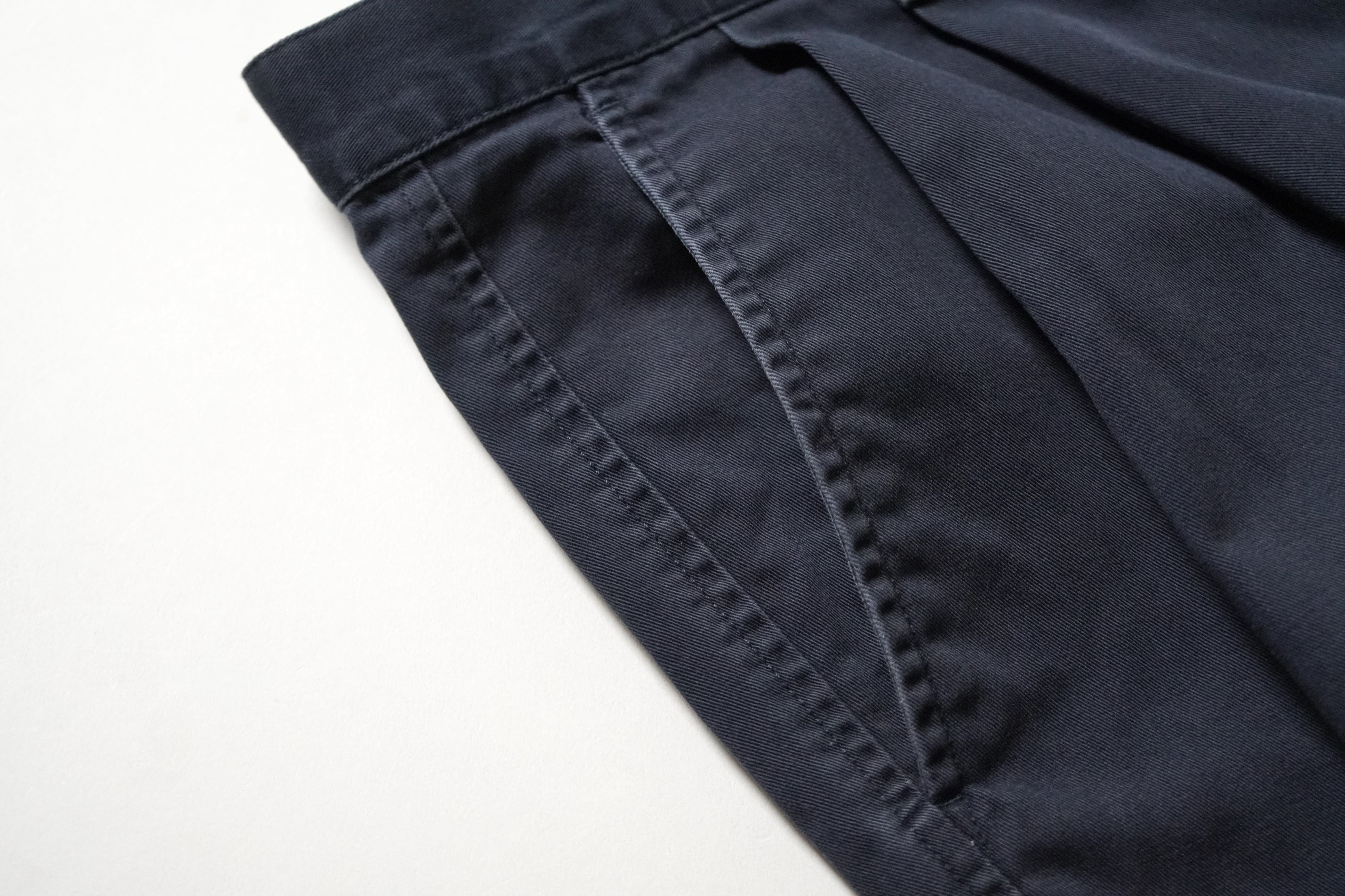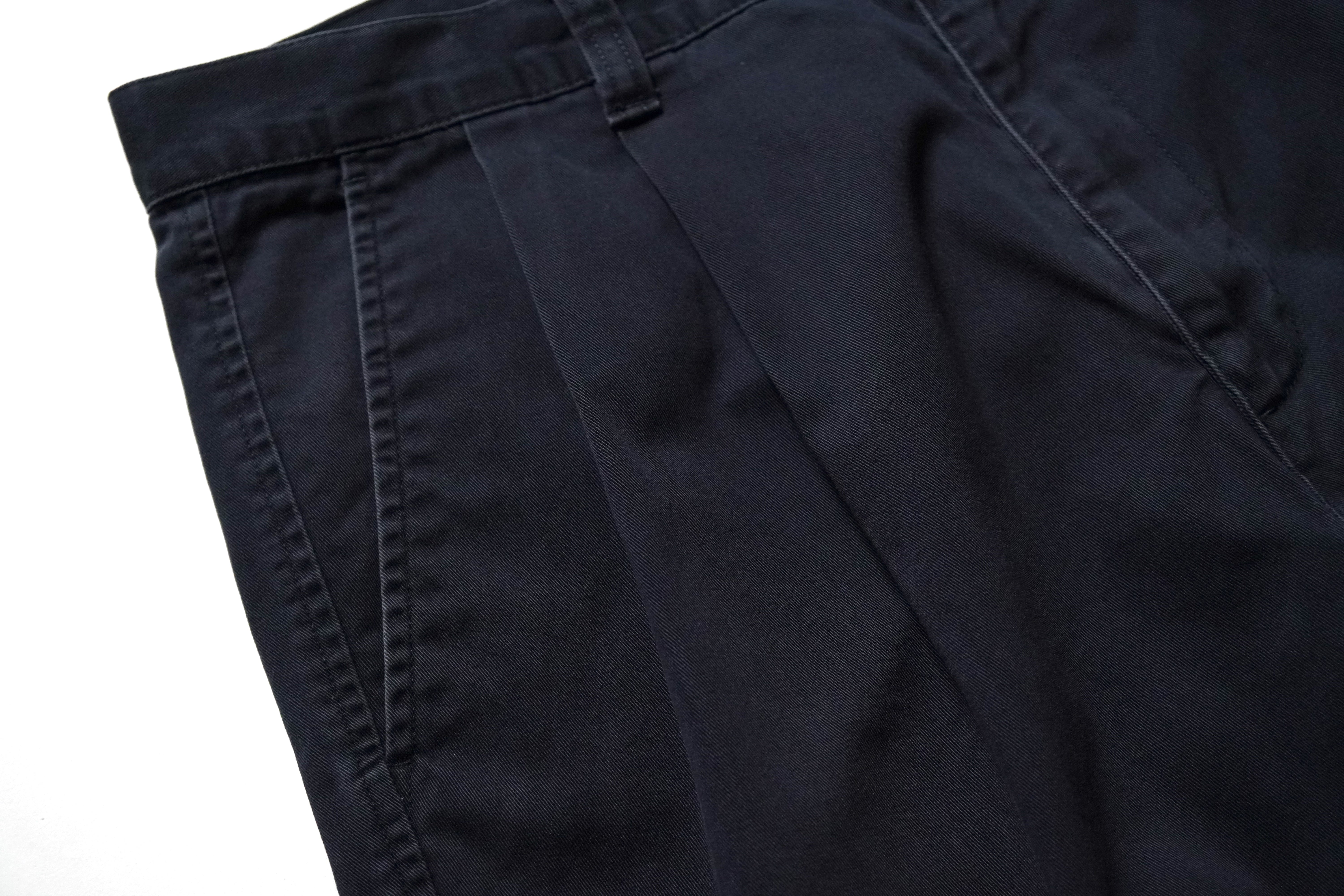 「リーバイス」が1980年代にオフィスカジュアル市場へ参入する際、ビジネスカジュアルラインとして誕生した「ドッカーズ」。シンプルでスタイルを選ばないアイテムが多く、こちらのネイビーショーツも、シンプルながら太めの2タック仕様でゆったりとしたシルエットが魅力の汎用性の高い1本。若干の使用感がありますので、写真にてご確認ください。