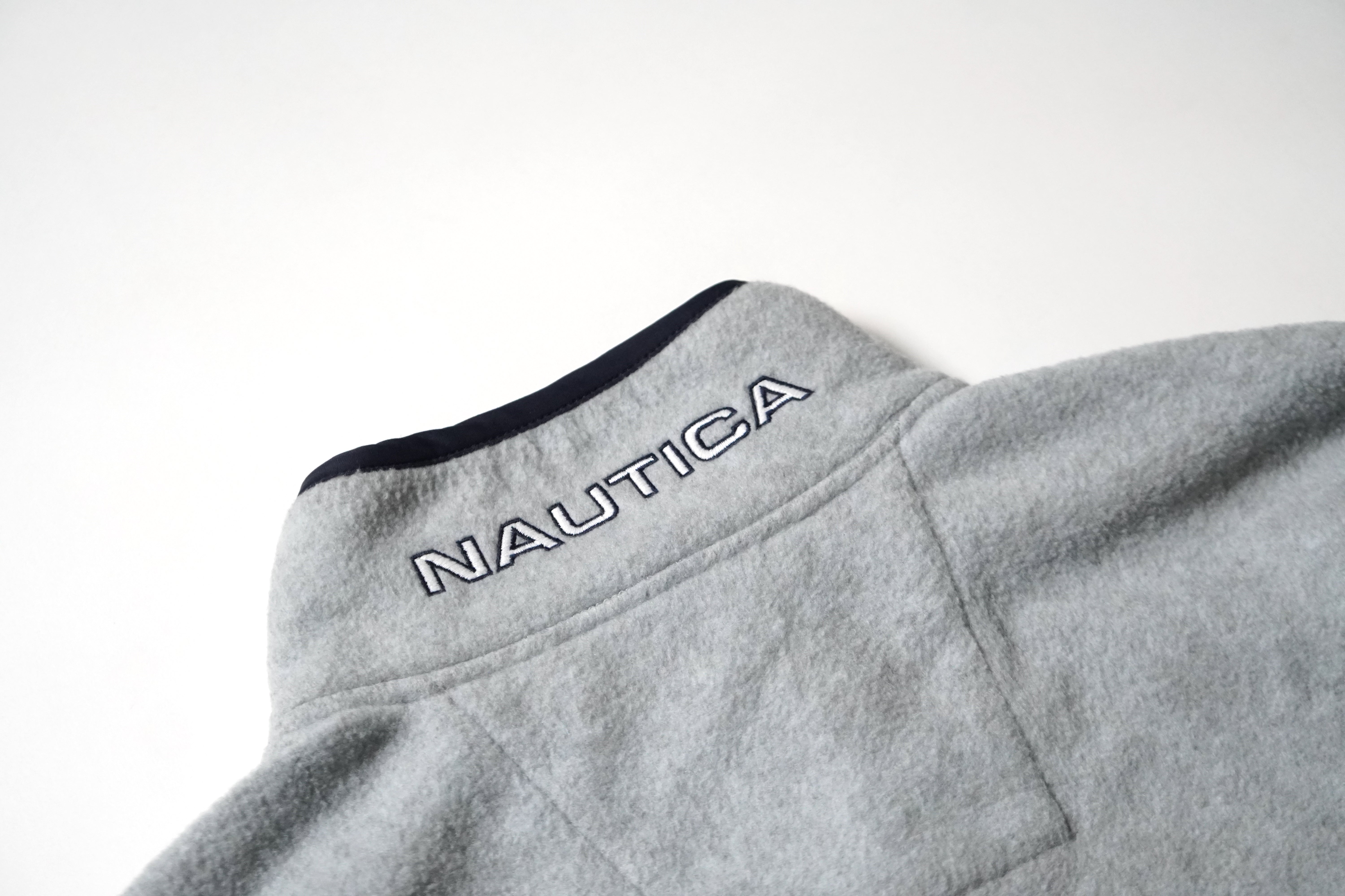 「ノーティカ」のプルオーバーフリース。汎用性の高いグレーカラーに、控えめなロゴ刺繍が好バランス。インナーとしてもアウターとしても活躍するこれからの季節にぴったりの1着。傷や汚れもなく、状態は良好です。