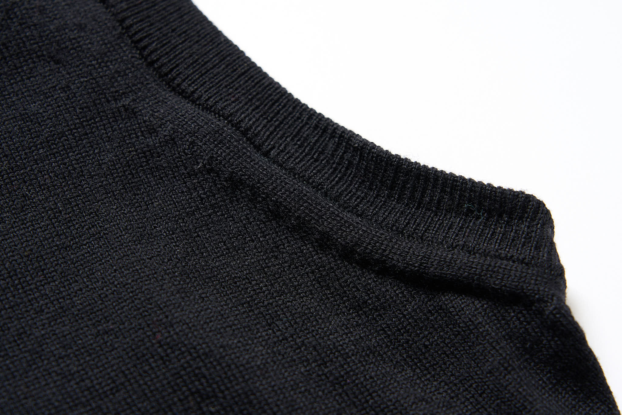 〈ニューリパブリック〉が〈ジョンスメドレー〉に別注したニットベスト。優しい肌触りの上質なニットを使用しており、端正で品のある佇まいが特徴です。無地のブラックで汎用性が高く、カジュアルからドレススタイルまで幅広く活躍。前ボタンの仕様で着脱がしやすいうえ、ボタンの留め外しで表情が変化するため着こなしに奥行きを与えてくれます。