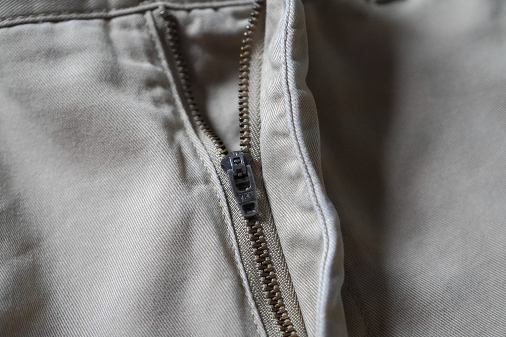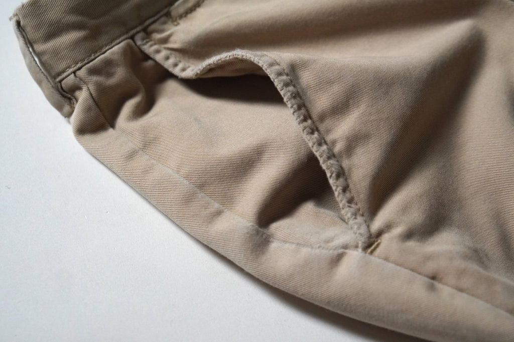 ノータックでウエストは35と大きめ、ベルトでぎゅっと絞って穿きたい1本です。