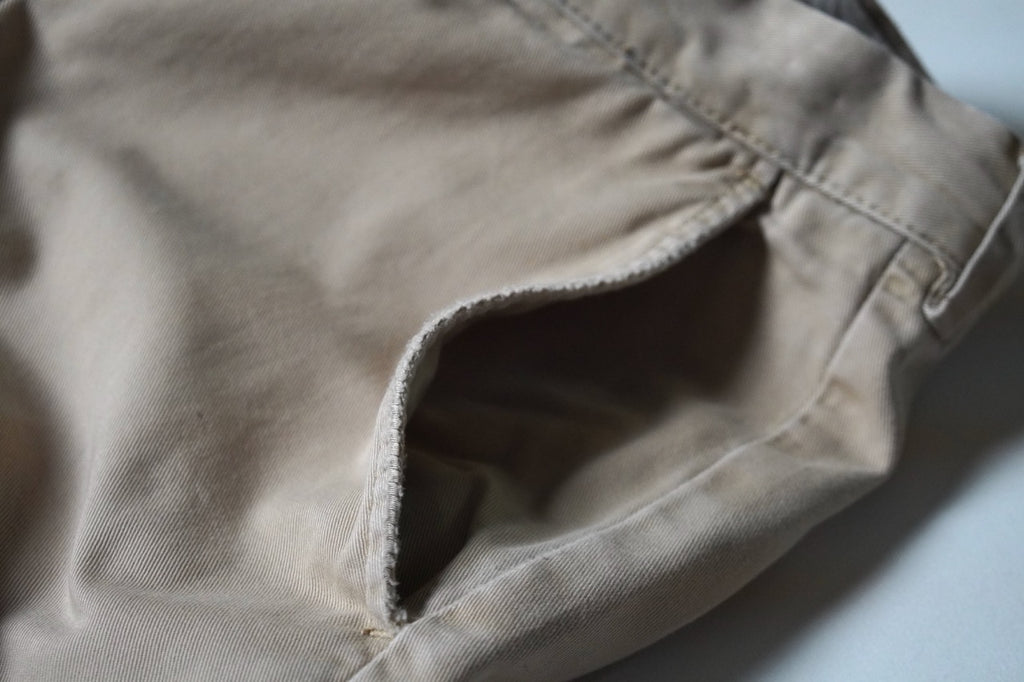 裾やポケット口などのよく擦れる場所がほつれているなど、傷がありますのでご確認ください。